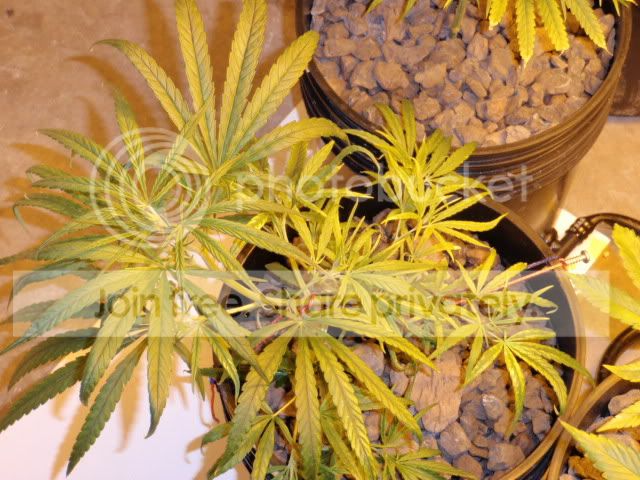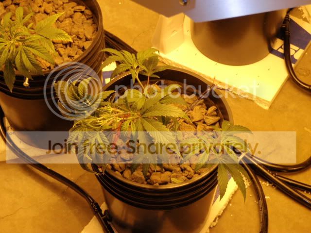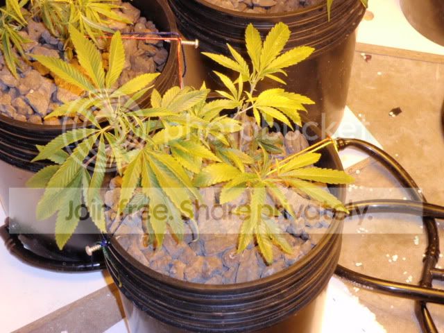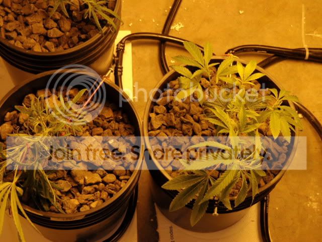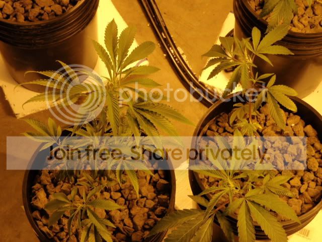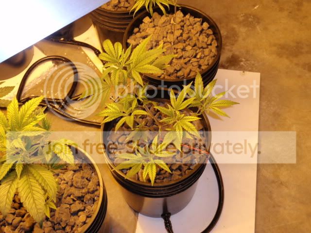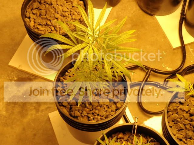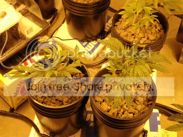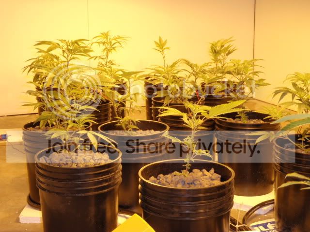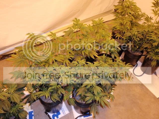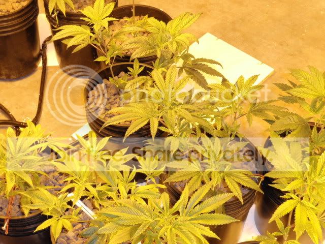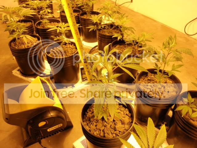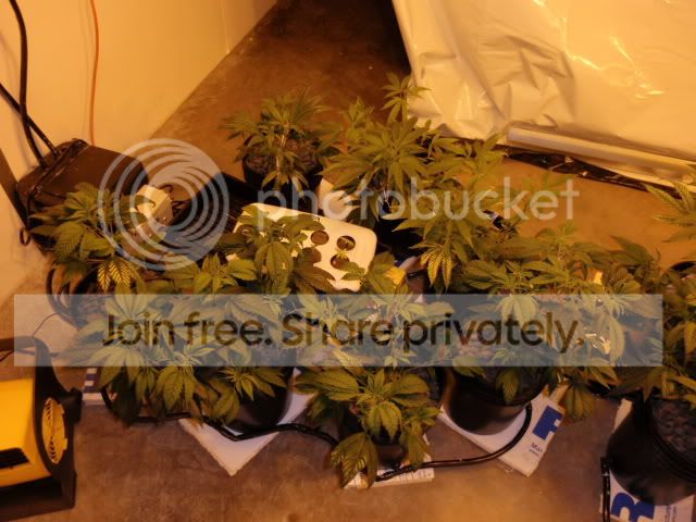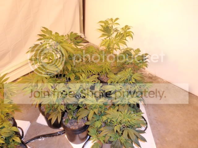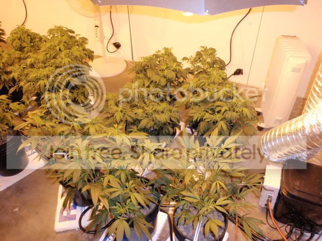 The room is 8ft wide x 14ft long and has 8ft ceilings. I am using 3 1000w HPS during flower. I have three 3ft parabolics. For fresh air, I have a fan the blows 1370cfm into the room and the same blowing out. At this time I have no issues with temp (70-75 lites on/off) humidity is a small issue as we usually are pretty dry here...just been wet lately so I have been right at 50-60%. I am using AN Connesseur nutes and I just ordered the new "PH Balancing" from them...gotta try em! So the following pictorial is to get you caught up to today...feel free to ask questions/make suggestions, I as I am always willing to teach/learn something new .Here's the res...notice I have it outside the grow room ![]() This is the room, where the lines from the res come in. The lights have 4ft parabolic reflectors ![]() The other end of the room, notice how I have the cords from the lights going out of the room. ![]() The ballasts opposite the walls ![]() The other half of the room, planning to create veg/area here ![]() Today's stats: PH - 6.2 Res Temp - 65 Room Temp - 72, RH 30 Using DutchMaster Gold and everything is at 400PPM, using only have strength for this week, then upping it to full doses. Ok, here are a few White widows, these seem to have had issues with transplant. Maybe the fact that I gave no nutes for the first few days contributed. ![]() ![]() ![]() Now these White Widows seem to have made it ok. ![]() ![]() Blue Cheese - Spindley Fuckers ![]() ![]() Super Lemon Haze - Kinda Spindly as well ![]() And last, but not least...Killa Kush Droopy due to lack of nutrients ![]()