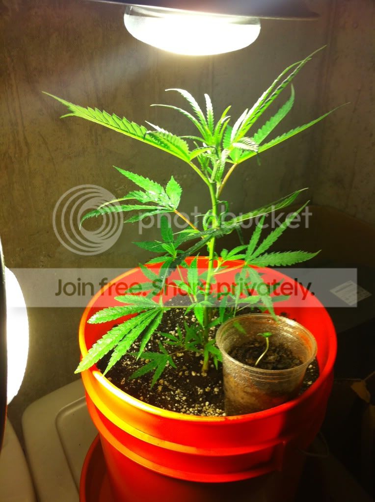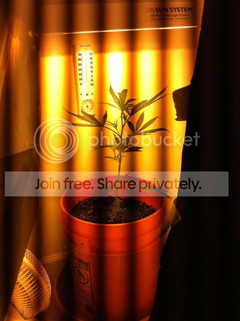 Okay this is my first grow attempt so go easy on me. The clone was originally givento me by a buddy that works at a dispensary. He gave it to mee in a solo cup. I continued to veg it for about a week but then started her 12/12 yesterday. She's in a 5 gal homer bucketunder a 150w subsystem hps. I gave her some happy frog fruit and flower nutes yesterday and she seems to be doing pretty well. The only thing I'm worried about is it's 85 degrees during the day. Here's a pic before I started to flower her and before I took the clones off. Which I also did yesterday.