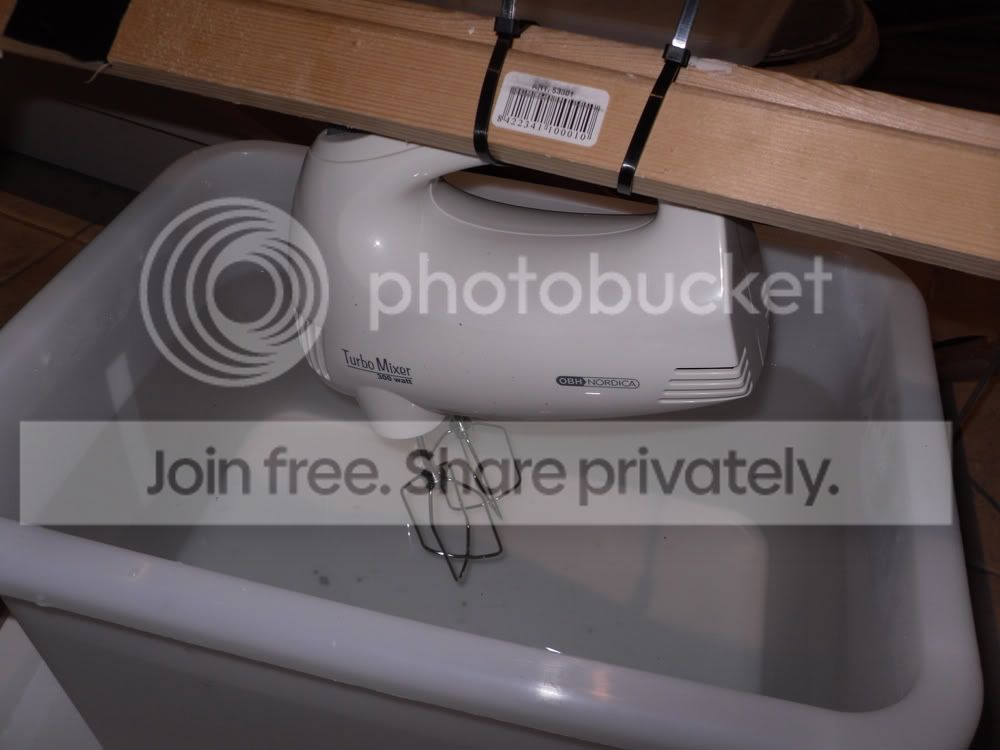 Måske du kan bruge fryseelementer en anden gang,dem man smider i fryseren og så have dem under baljen imens den står og pisker så vil kulden gå op i bunden jo. Lavede lidt selv for noget tid siden på Ulduzen og fulgte CFP,s råd med og lige skylle slutproduktet i rent afklet vand,når det er i en pose altså,bare lige dyppe det og så kommer de overskydene farverester væk.. Nisseflot. P.s og så er det osse de "gammeldags" kartoffelskrællere,som man stillede på bordet med groft sandpapir indvendigt eller anden anordning-men uanset hvordan og hvorledes,så skrubber de skrællerne og en slange i siden til og lukke vandet ud med-præcis som med en bordvaskemaskine..eller en vaskemaskine som Lolli fandt for ingen penge..en bajonetsav-de elektriske med variabel hastighed laver osse en bevægelse,som kan være til gavn,hvis man monterer noget fast på savklingen--mange mange muligheder og sjovt og lege Flemming Leth-behøver ikke altid være så "let"..en form for granulat tilsat-kan måske hjælpe med og få alle trics af-som ikke opløser sig vel og mærke..og intet afgiver-ved bare ikke lige hvad..