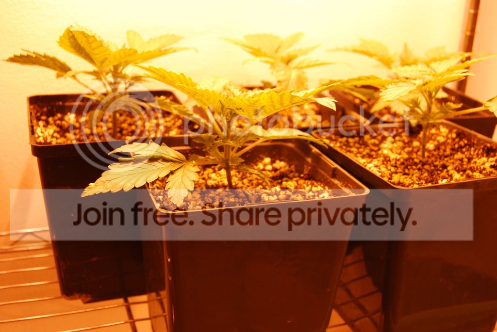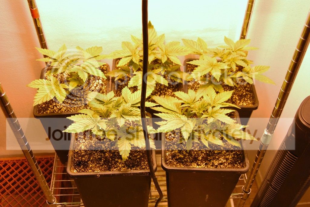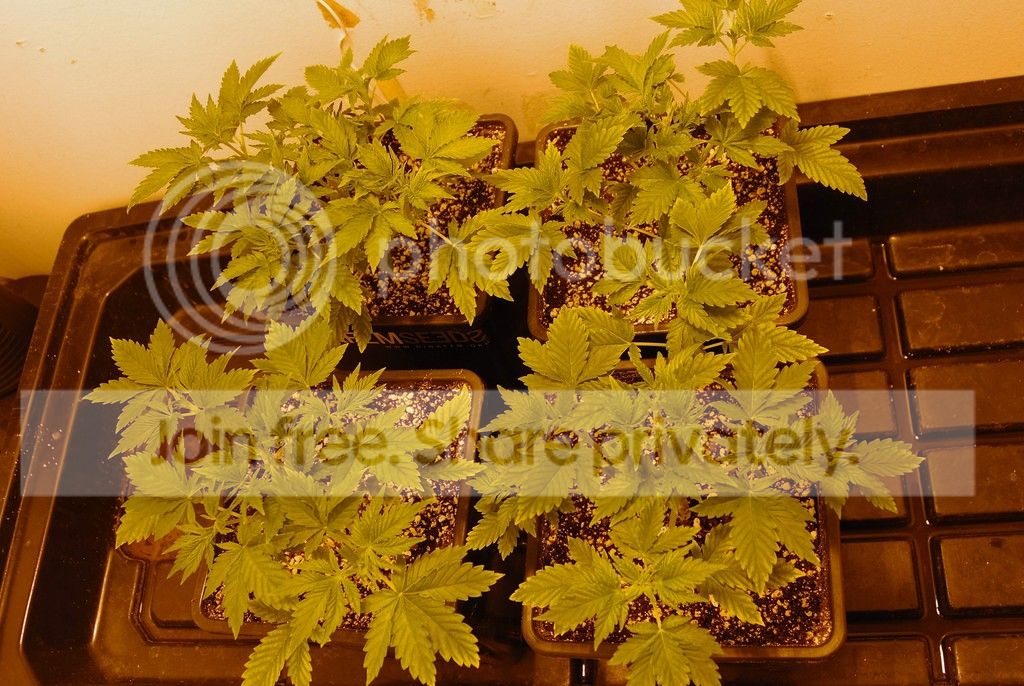 5 feminized seeds soaked for 24 hours, planted December 14, 2015, 5 seedlings,germinated December 16, 2015. Rooted in Canna Coco with approximately 20% added perlite, base nutrients will be House & Garden's Cocos A&B, adding Cal-Mag as needed and a bloom booster or 2 near the end. ![]() Still early days, First 7 days under T5 44's (4X4Ft. tubes 6400K flos), switched up earlier than I'd've liked to a 430 W Son Agro HPS. Just catchin' a likkle jump for the Expo here in May. At 11 days, nothing special, some low end hps shots. ![]()