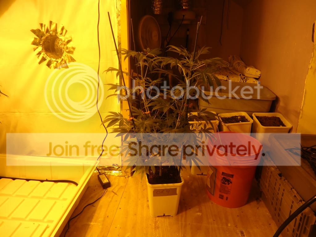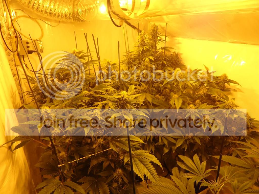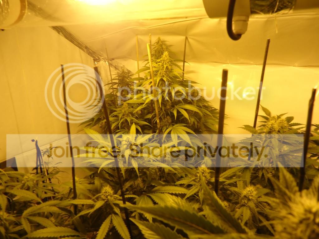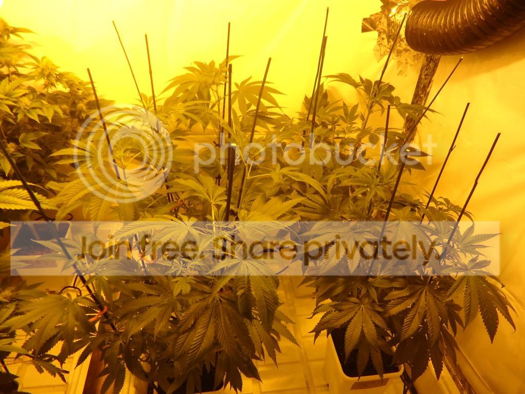 the room is in an attic with slanted cielings so my headroom is kinda limited . the flower room is basicly 4 x 8 with 6 foot peak cieling slanted down to a 4 foot back wall (you'll see ) i have 3 600 watt hortiluxes powered by digital ballasts all in 27" cooltubes butted together & a 6" ventilation system blowing through the lights . Ok enough babble ..... time for some plant pics . sorry for the yellow pics ... i suck at photography ... as you'll see . the ladies are all staked up & ready to go ... i hope the stretch isn't to bad or i'll be bending branches down soon . ![]() ![]() ![]() ![]() Well ..... thats it for day one . i'll be back with updates & hopefully better pics after the new camera gets here . Thanx for lookin in & any comments ... good or bad . Thanx Festivus for these great genetics to grow out !!!!