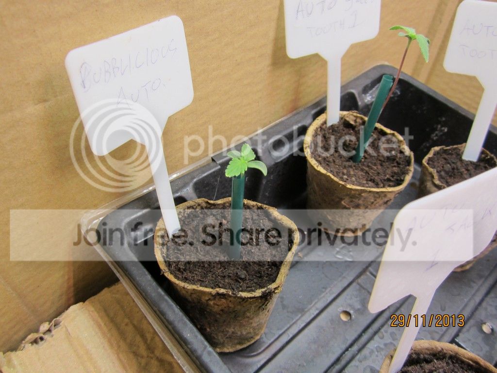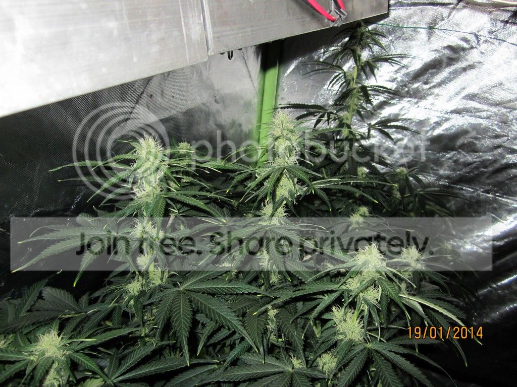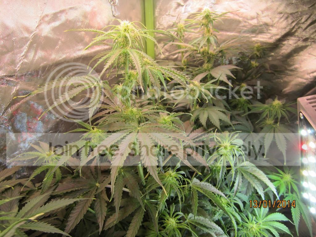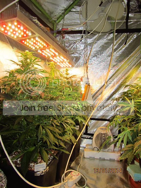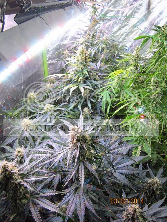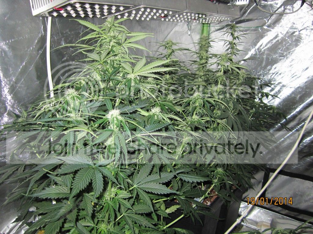 grow room : 1,2 x 1,2 x 1,8 grow tent Lights : Astir ASL24GP total wattage 296. schedule : 20/4 grow medium : soiless mix. Τύρφη ξανθιά/περλίτης 50-50%. pots : 6 x 18 litres + 1 x 11 litres feeding : Advanced Nutrients. Sensi Grow, Connoiseur bloom, B-52, Big bud, Overdrive, Biobizz rootjuice. Ladies : 4 Auto Jack(Paradise seeds), 2 Sweet Tooth auto(Barney's farm), 1 Bubblelicious Auto(Nirvana seeds) Έχω 2 βδομάδες καθυστέρηση στους χρόνους, γιατί έκανα 2 καλά λάθη στην αρχή και τα πήγε πίσω. σε όλο το grow το e.c το είχα ψηλά και για αυτό τα 3 από τα 7 κάηκαν την 6η βδομάδα περίπου.ξεκινήσαμε με 2 πανελς (48watt) και σταδιακά φτάσαμε τα 296 watt στο τέλος.το P.H σε όλο το grow κυμάνθηκε από 5,9-6,1. Το E.C έφτασε στις τελευταίες βδομάδες το 2,45. συνήθως τα φυτά κάτω από τα Led τρώνε πιο πολύ από τις HID. week 1 (48watt){week 2 – 96watt, week 3 – 184watt} ![]() ![]() ![]()