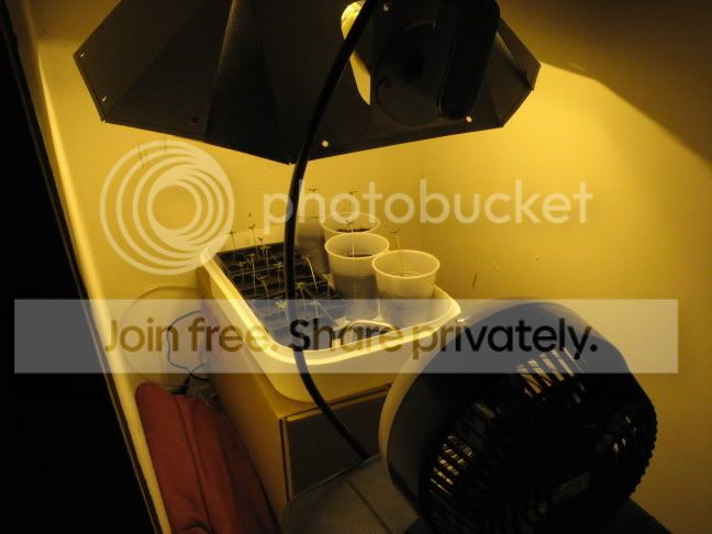I thought they seemed a bit naked as far as leaves. I just added the lamp lastnight and I can already see the leaves balloning in size. Oh yeah, I put them in soil 9 days ago and I first started to see some action at day 4. Just to give a better time frame. Update: Well, my fears for my transplant "victims" have struck true. My largest Satori, the first attempt at transplant and the most clumsy, is falling over on her side. I built a scaffold to hold her upright (rolled-up notecard) against the fan until/ if she gets better. Do you think it would be worth my time to get some B1, like Superthrive? Here are some pictures of my closet and the ailing lady: ![]()