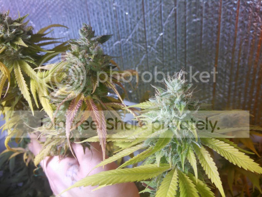 First up is #1, she reeks of sweet hazy dough/cookie with a menthol kick. A little stretchy but nothing horrible more likely because of th 3gal. Pot. Buds are nicely dense and hard. [IMG] [/IMG]#2, this one make me think of cookies with a sweet haze backed up by a fuelly mint. Great vigor, stacked great rock hard buds with less stretch of all five. Even being the smallest still one of the better producers.[IMG] [/IMG]#3, a lot like 2 in structure with very minimal stretch, very hazy. Smells of sweet mint dough dropped in a bucket of fuel.[IMG] [/IMG]#4,super frosty with this one double of all the others. another stretchy gal but I think with more training and bigger pots she could produce even better. Nice solid nugs. Smell is a lot like 3 but not as much fuel smell with this one but still delicious. [IMG] [/IMG]#5 with the most stretch of them all the buds are more spaced out but still dense, from eye balling I would say the least yield. Heavy haze smell with sweet mint to water the eyes... love huffing on this one lol.[IMG] [/IMG]All in all I am very pleased with them all,trimming should be a breeze with these gals and I will be running them again with a couple changes with pot size and training see if can push them abit longer. Still gonna wait till the smoke report to say which are my favorites but I have no doubt that there is a keeper or two lol. More pics as soon as I get them hung and drying, tablet just doesn't do them justice there is some serious frost going on with these and want to show them off. A BIG thank you to OJD for allowing me the chance to test these and hope I did them justice. And thanks to icmag for the place to do it. And of course a big thanks to all that followed along. Smoke reports to follow after a nice dry, trim, and cure. I will also continue to post my results of following runs.