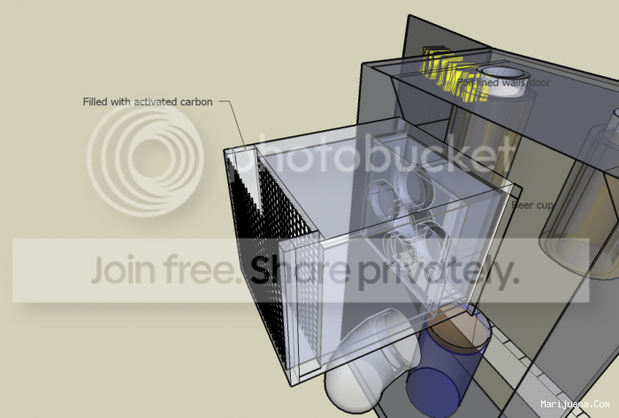 ![]() its just a box extending from the fan with 2 screens about 1/2" apart. You fill the gap in between with activated carbon and go to town!