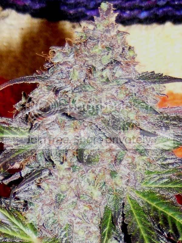 The only article I've seen about purple colour was by Subcool and I don't listen to that guy, especially after his claim that all the west coast purples were the same. If I ever go to hell, I bet the devil puts me in a padded cell with Rezdog, Arjan and Subcool for all eternity! lol But joking aside, I don't think the pigmentation of the purple Afghan is the same as that I've seen in plants that turn purple due to temperature. Plants that turn purple through cold temps have a deep, dark purple colour, soemtimes it looks almost black, but the purple Afghan was a lighter, brighter shade altogether, in places it was bright magenta and I reckon this is a totally different form of colouration to the low temp purple. You can see what I mean by bright magenta type of purple in these pics of the green/pink pheno: ![]() ![]() ![]() ![]() ![]() ![]() You can see the magenta colouring in these cured purple pheno buds too: ![]() ![]() ![]() ![]() ![]() ![]() ![]() ![]() ![]() It's hard to get accurate colour rendition on a photograph, but the PA buds had a definite 'what the fuck is THAT!' factor when you saw them in the flesh, even people who had seen plenty of purple buds before were surprised by the colour of these buds as they are purple in a different way and the color tone is qite different to your usual purple buds. I'd love to know what's going on inside the PA to make it so colourful, and why it has evolved that way, the leaves stay green, and it's always the leaves that first turn purple in reaction to cold temperatures, so I wonder what would happen if I were to deliberately drop the lights out temps during a run of PA clones, would the leaves turn dark purple in response to the cold, but the buds remain a brighter, lighter purple? If so, that would kinds of prove that there are two different purple pigments at work here. I will have to try this experiment over winter, it gets down to 10 celsius in my grow in winter if I don't heat it, which is why this Sour Diesel IBL turned purple: ![]() ![]() Compare the dark purple of this SD IBL bud with the bright pink of the green/pink pheno PA, they look like totally different pigments to me: SD IBL: ![]() PA: