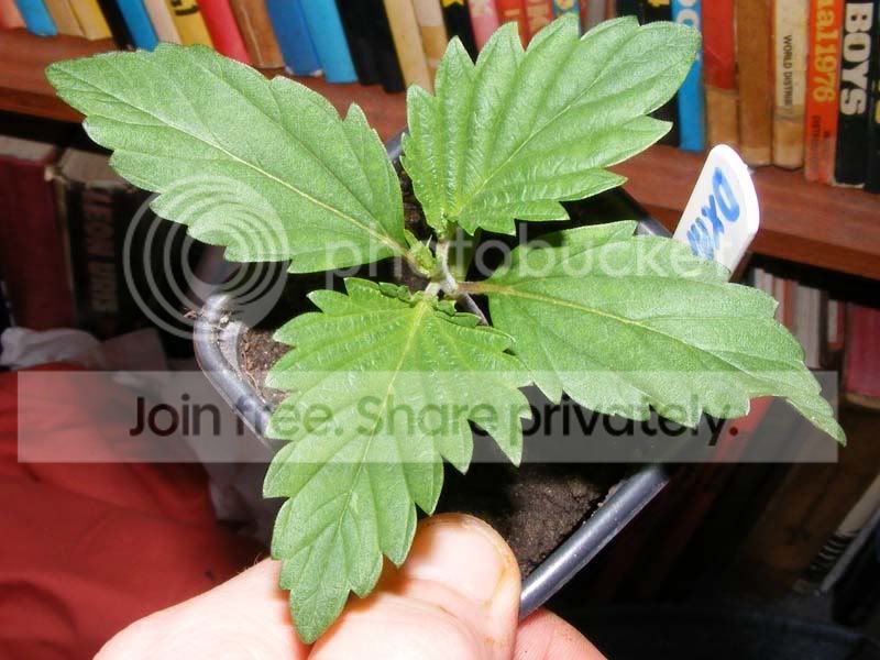 The good Dr D gave me a ten pack of Ducksfoot x Afghan f2s at last year's icmag cup and I promised to do a grow report. Well, 10 months later, I finally fulfilled on my promise! Started 10 seeds in paper towels and all sprouted within 36 hours, very healthy and vigourous from day one. I potted them into little square pots of John Innes seed compost. Sadly two didn't make it but the other 8 are all healthy and look good at 14 days old under a 65w CFL. ![]() I am very pleased to discover that there are a number of webbed phenos! I intend to make F3s by selecting just the webbed plants, see if I can lock down that trait. This looks to be the 50/50 pheno as it has the Afghan leaf shape but the leaves are webbed, the lower one is fully webbed, whereas the upper on is webebd on the left side only. ![]() This one looks like it will be a little bit webbed as the leaf on the right is slightly webbed. ![]() Definite Ducksfoot pheno this one, looks more like a strawberry plant than ganja. Hope this one is female, if so it will get cloned and saved as it looks stealthy to me. ![]() Afghan leaning pheno, not webbed. ![]() Very Afghan looking pheno. ![]() Strange one, the leaf on the right is webbed but a strange shape, the one on the left is also webbed, but only at the bottom. ![]() Afghan pheno and a bit smaller than the others. ![]() So fingers crossed I find both a webbed female and a webbed male to make F3s! |